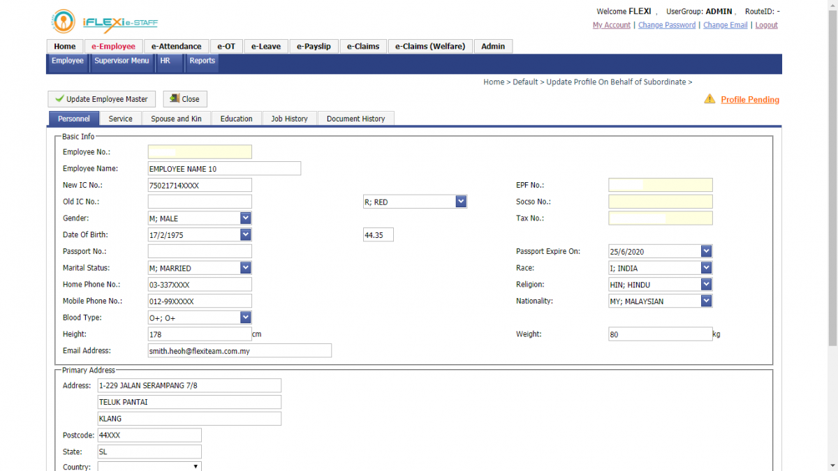 Employees can access to their personal records. They’re allow to update their personal record. The system will make the effective changes once their changes approve by the administrator.